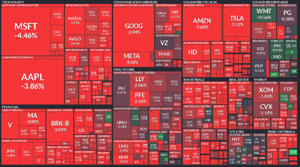 米国株式はダウ2.73%、ナスダック3.52%、S&P2.91%と全面安でした。
