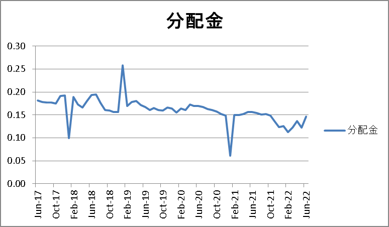 分配金はおおむね0.10~0.20ドル/月で推移しました。