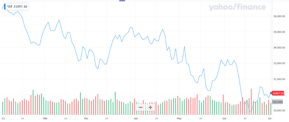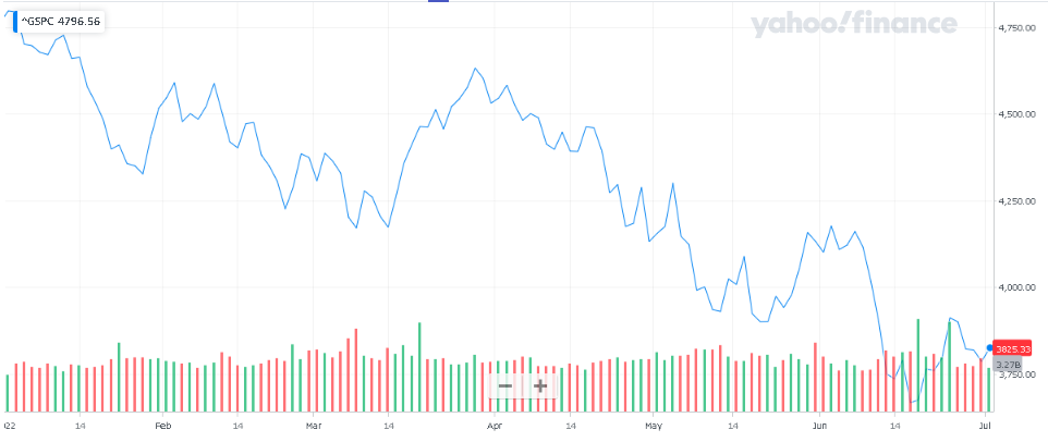 上半期の下落率はナスダックが過去最大、S&P500も1970年以降で過去最大、ダウも1962年以降で過去最大でした。