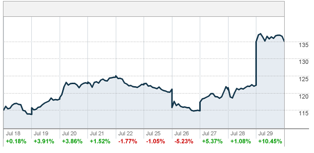 決算発表後の7/30のアマゾン株価は何と10%超の暴騰でした。