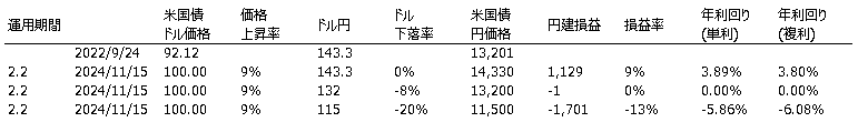具体的に米国債に投資した後、ドル円が115円まで円高に戻った場合の円建て投資リターンがどうなるかをみていきます。
