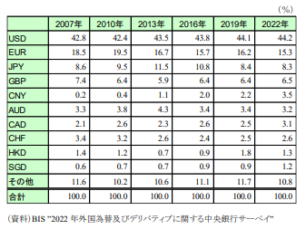 外貨準備の通貨別構成、外国為替市場の通貨別シェアでもドルが中心