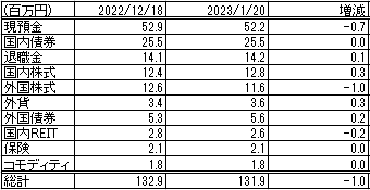 前回更新時(2022/12/18)から、約100万円資産が減少しました。
