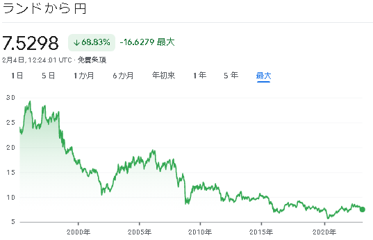 1995年3月から2023年2月の28年で約69%下落をしています。