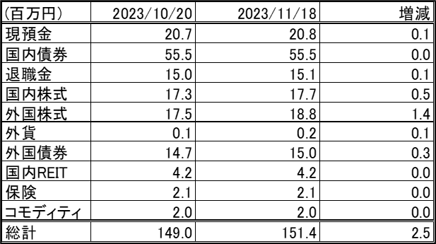 前回更新時(2023/10/20)から資産は約250万円増加しました。
