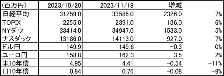 2023/11/18時点のポートフォリオの状況の更新です。