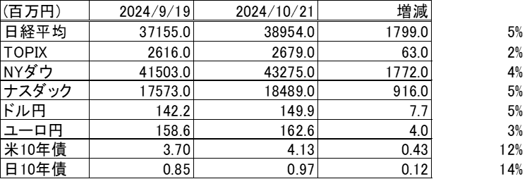 2024/10/21時点のポートフォリオの状況の更新です。