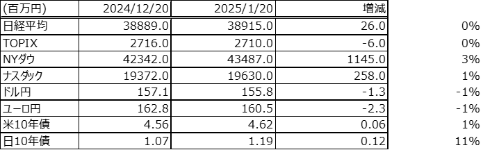米国では1/10に発表された12月の雇用統計において、非農業部門雇用者数が25.6万人増と市場予想の16.5万人増を上回るなど、米国の雇用市場が依然として強いことを示す内容であったことから、利下げペースが遅くなるという見方が台頭し、長期金利が上昇、株価も一時的に調整で下落しました。