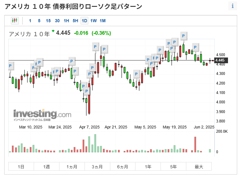 米国債は、関税発表直後は上昇(利回り低下)で反応していますが、その後、徐々にこの問題が米国の財政赤字、信認の低下の問題であるということが認識されたのか、その後、下落(利回り上昇)という動きを見せました。