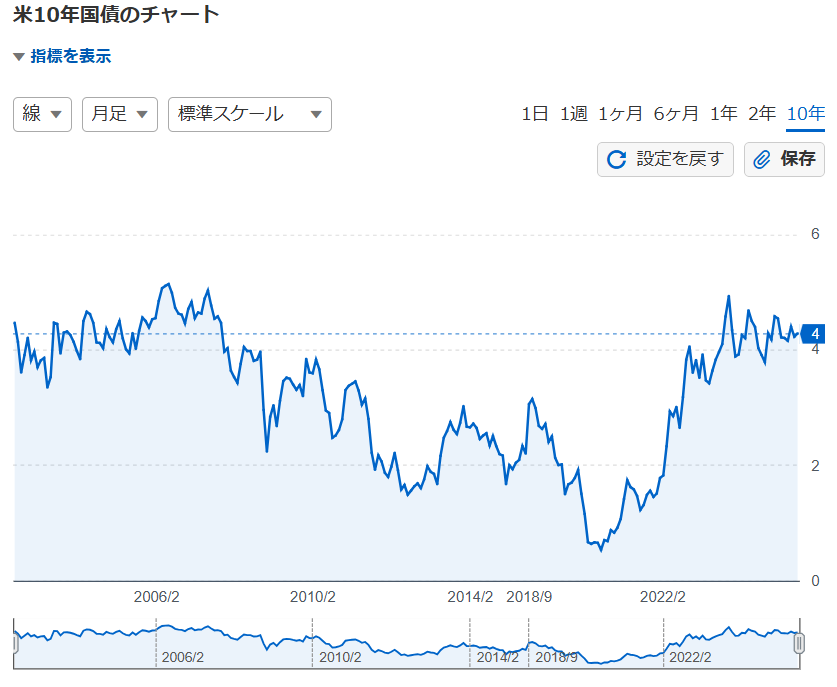 - リーマンショック直後、世界的なリスクオフで米国債(10年債)は買われて利回りが大きく低下(価格は上昇)