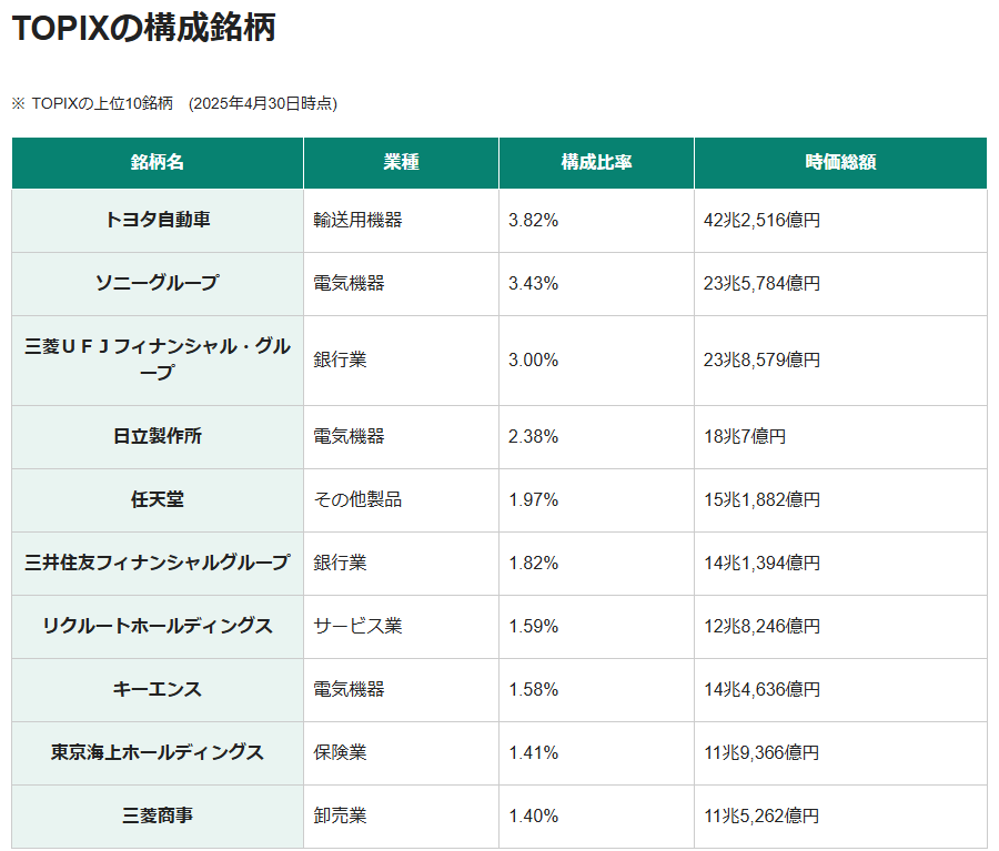 ちなみに、TOPIXと日経平均株価の違いは以下です(松井証券さんのページより抜粋)。