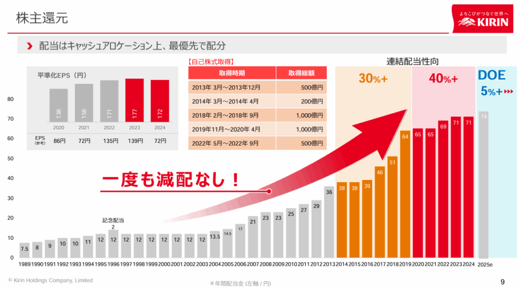 キリンホールディングスの配当性向/配当方針