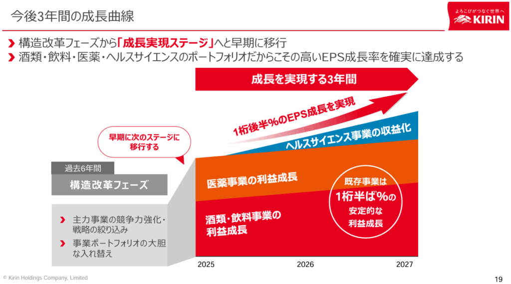 ちなみに、キリンホールディングスの事業は「酒類・飲料・医薬・ヘルスサイエンス」で構成されています。