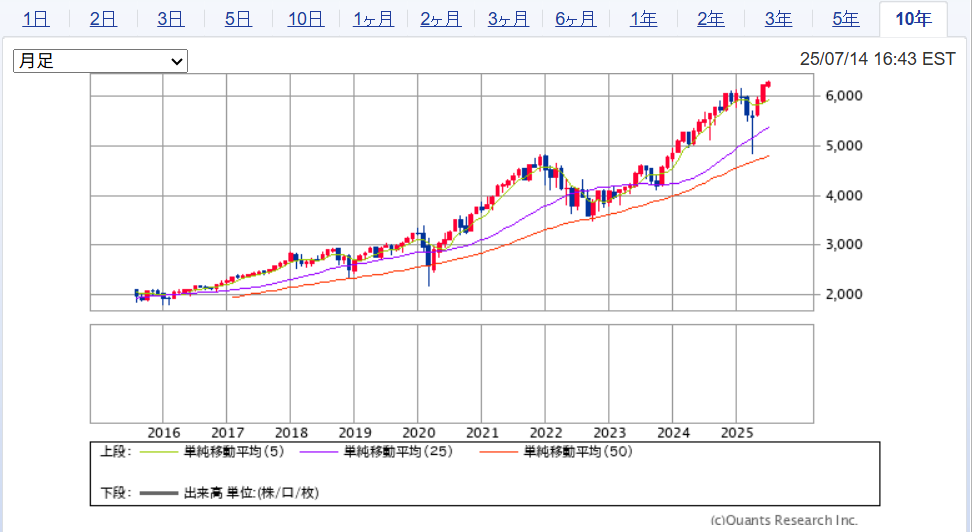 長期チャートで見ても、移動平均から少し上に離れた株価になっているので、どこかで速度調整はあると思います。