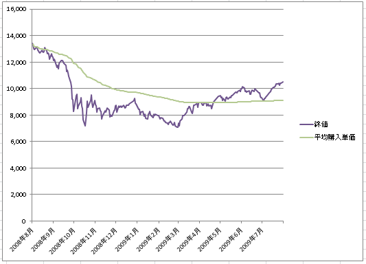 まず投資開始時の2008年8月11日の終値は13,431円でした。