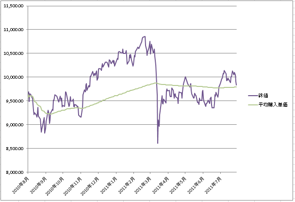 まず投資開始時の2010年8月2日の終値は9,570円でした。