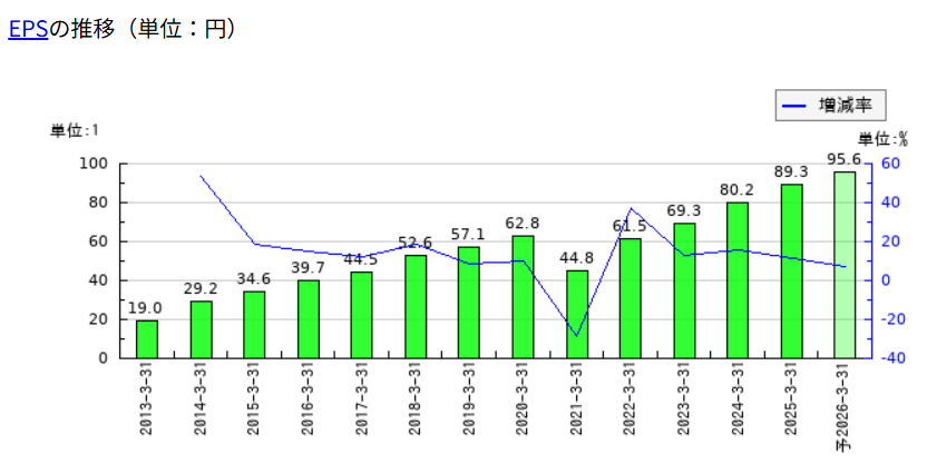 同社は「家賃収入(安定)」と「物件売却(攻め)」のバランスが非常に優れています。過去10年以上のデータを見ても、コロナ禍などの一時的な要因を除けば、EPS(1株当たり利益)は着実に増加しています。