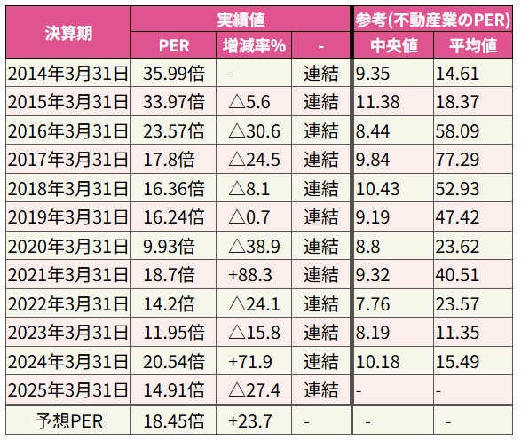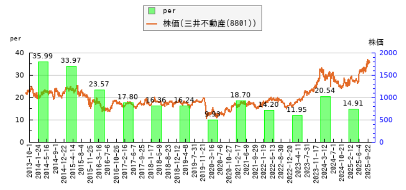 三井不動産は「業界トップとしてのブランド力」があるため、他の不動産株よりもPERが高めに評価(許容)される傾向があります。これも不変の構造です。