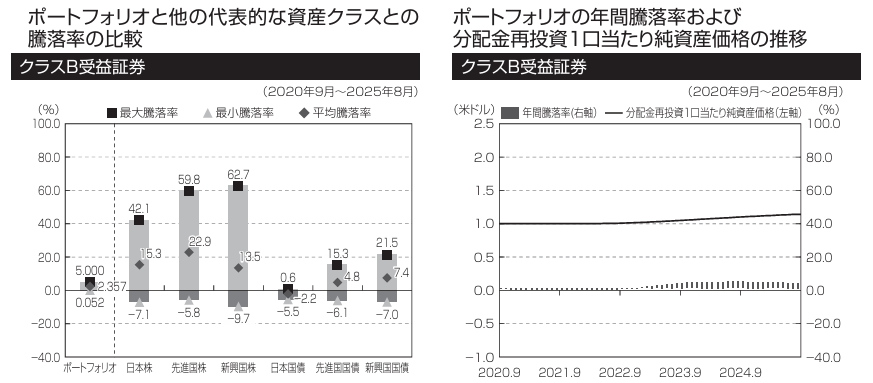 なお、目論見書には「クラスB受益証券」と「インスティテューショナルI受益証券」のパフォーマンスが記載されていますが、「インスティテューショナル」は機関投資家向けと思いますので、個人投資家向けの「クラスB受益証券」で、他のMMFとは比較をしています。