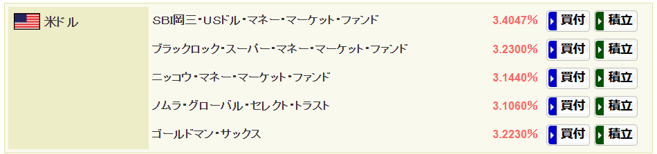 SBI証券には、米ドルで5つの外貨建てMMFがあります。