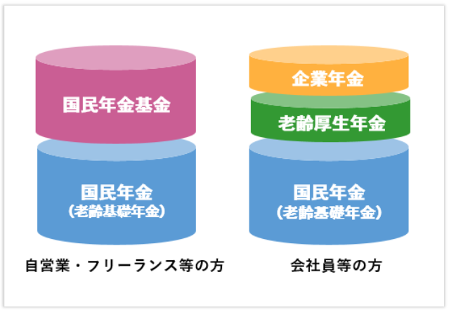「国民年金基金」は「国民年金」だけにしか加入していない自営業者など「第一号被保険者」用の「上乗せ年金」です。