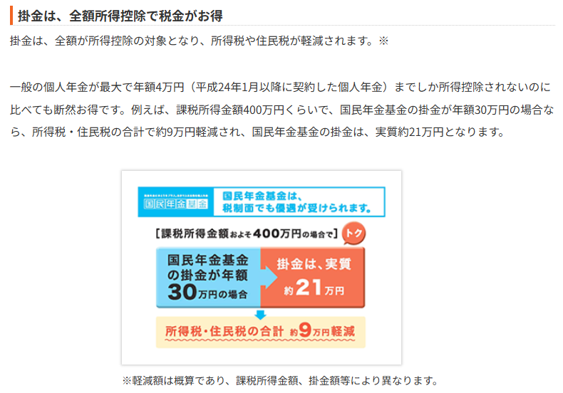 「国民年金基金」のメリットの一つは「掛金が全額所得控除」になり「所得税や住民税が安くなる」ことです。