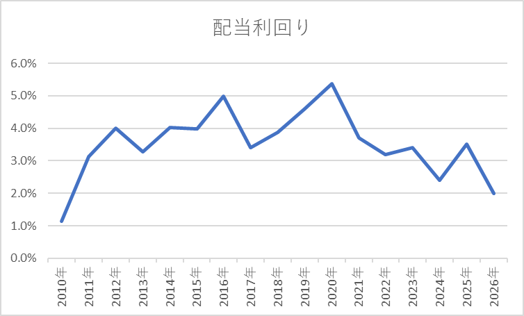 この水準は過去の同社の配当利回りからしてもかなり低い水準です。