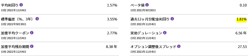 AGGに投資する際の注意点としては、ドル建て資産のため、ドル円の為替変動により、円ベースでの利回りは影響を受けます。