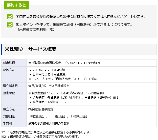 楽天証券が2021年12月26日から「米国株式の積立買い付けサービス」を開始することを発表しました。