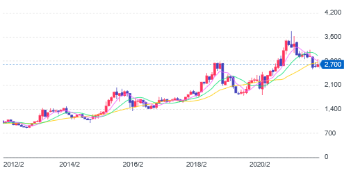 10年チャートを見るとほぼ右肩上がりです。