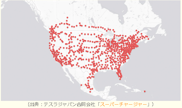 テスラは自社でスーパーチャージャーというEV充電網を整備しています。
