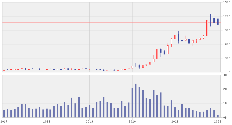 2020年頃から株価は急騰しています。