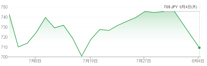 今回、第一四半期決算を発表し、2022/8/4時点の株価は709円に下落しています。