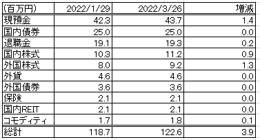 1~3月の間は新規買い入れは行っていないので、各資産の割合は以前と大きく変わりありません。