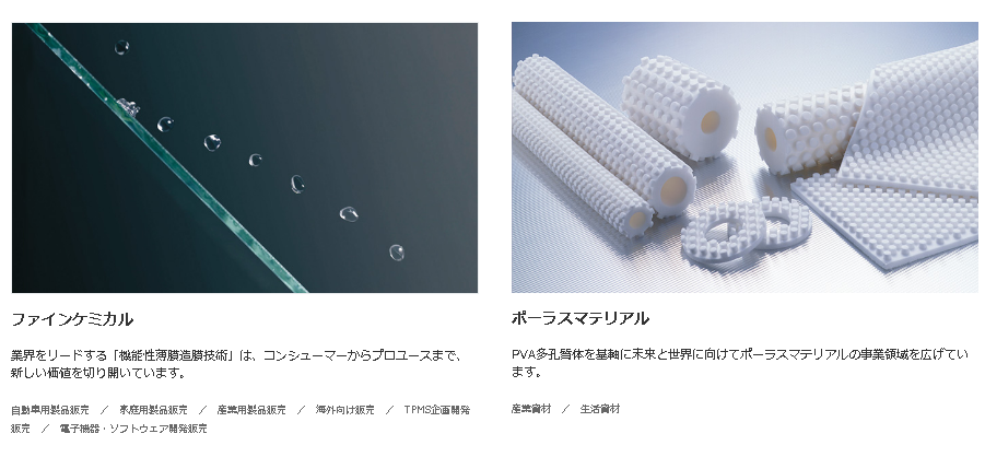 ちなみにファインケミカル事業の具体的な商品は以下のような自動車関連商品や家庭用製品、その他に産業用製品もあります。