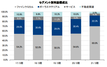 中心はファインケミカル事業とポーラスマテリアル事業です。