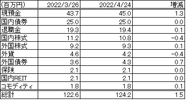 2022/4/24時点のポートフォリオの状況の更新です。