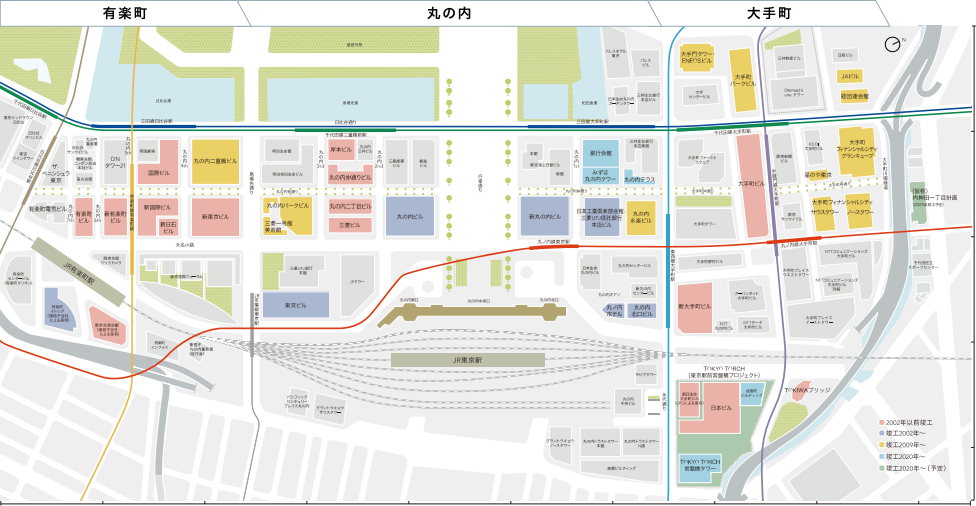 以下のマップは三菱地所が東京丸の内エリアで保有する資産です。