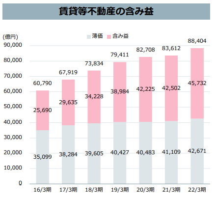 もちろんこの含み益の金額は、不動産市況によって短期的に増減します。