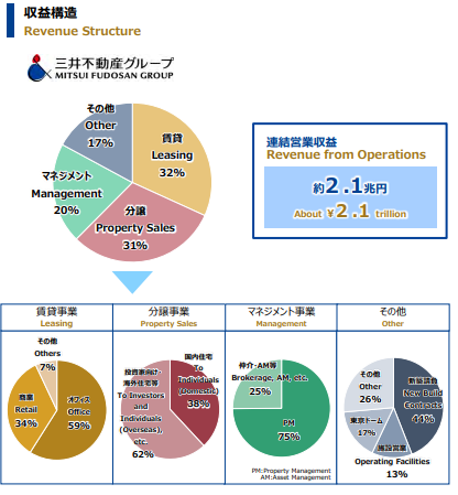 同社の事業ポートフォリオは、以下の通り、賃貸事業、分譲事業、マネジメント事業などにバランスよく分散されています。