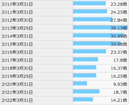 そのため、PERでみると徐々に割安になってきているのがわかります。