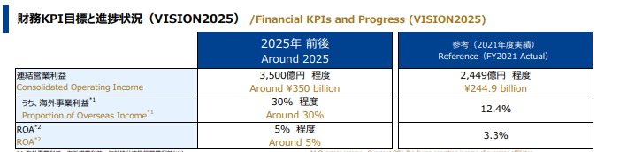 同社は中期経営計画において、現在12%程度の海外事業利益を2025年前後には30%程度まで引き上げる目標を掲げています。