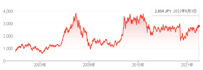 株価的にはそこまで割安と言える水準ではないと思いますが、1)EPSは順調に伸びている割に株価はあまり上昇していない、2)含み益を勘案するとPBRは低い、3)業界最大手企業で長期保有する上で倒産リスクを心配する必要がほぼないため、資産株として長期保有前提で検討してみても面白い銘柄だと思います。
