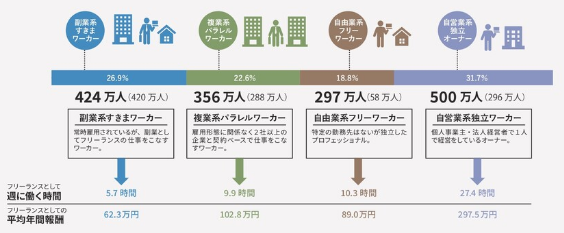 フリーランスの平均年収は自営業系独立ワーカーで約300万円、それ以外は100万円程度となっています。