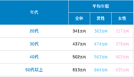 これらから30~40代のサラリーマン男性の年収はおおむね400~500万円程度でしょうか。