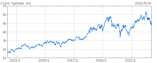 | CSCO | シスコ・システムズ | コンピュータ ネットワーク機器 | 48 | 45 | 63 | 43 | -10% | -32% | 12.5 | 3.5% |