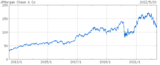 | JPM | JPモルガンチェース | 銀行 | 140 | 127 | 158 | 117 | -16% | -26% | 11.03 | 15.4 | -28% | 10.6 | 1 | 3.4% |