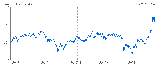 ダウ構成銘柄の内、エネルギー関連というとシェブロンになります。