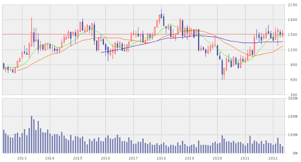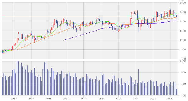 10年チャートで見ると株価は緩やかな右肩上がりです。